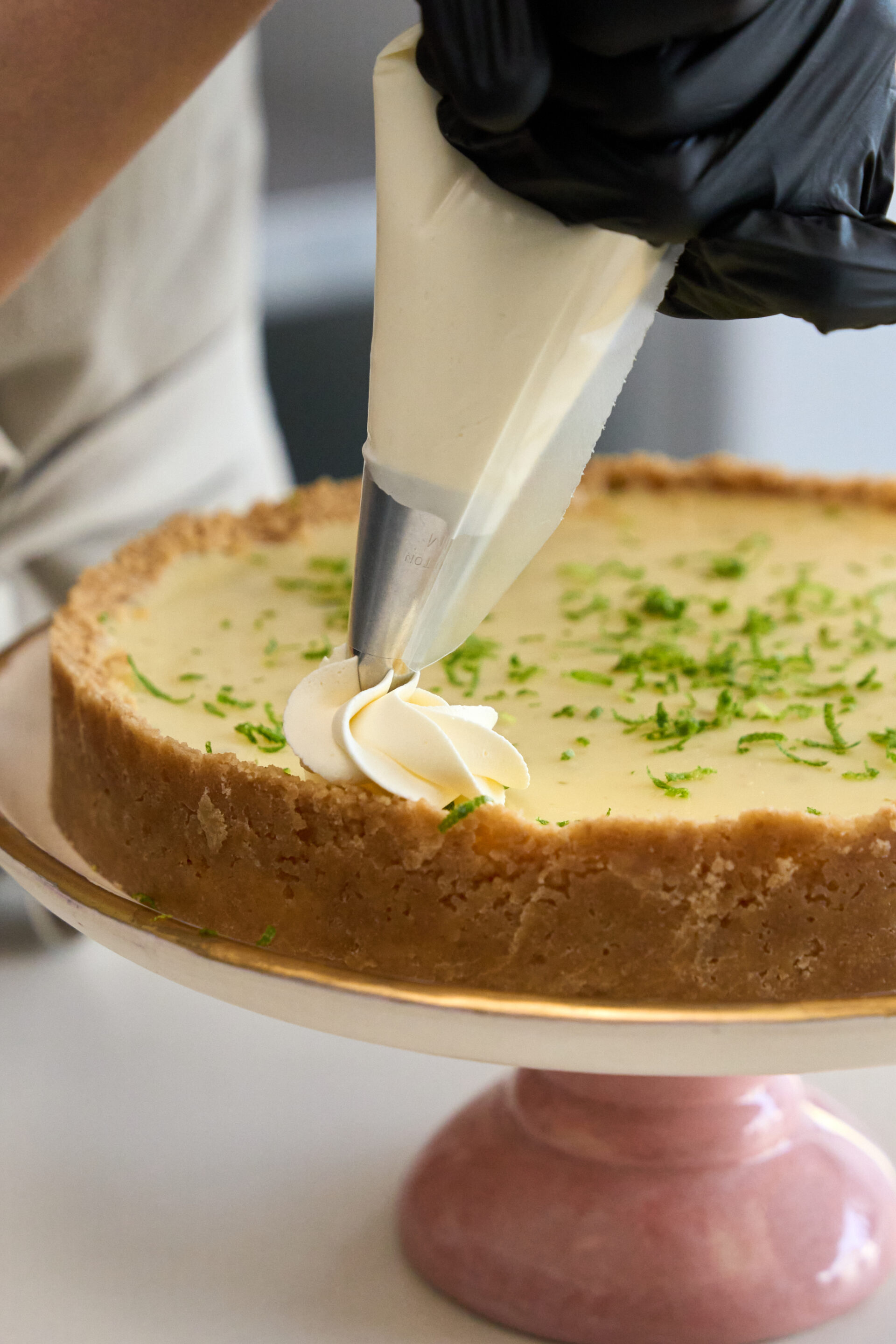 Masa crocante de galletitas rellena con una suave crema de limas y chantilly.